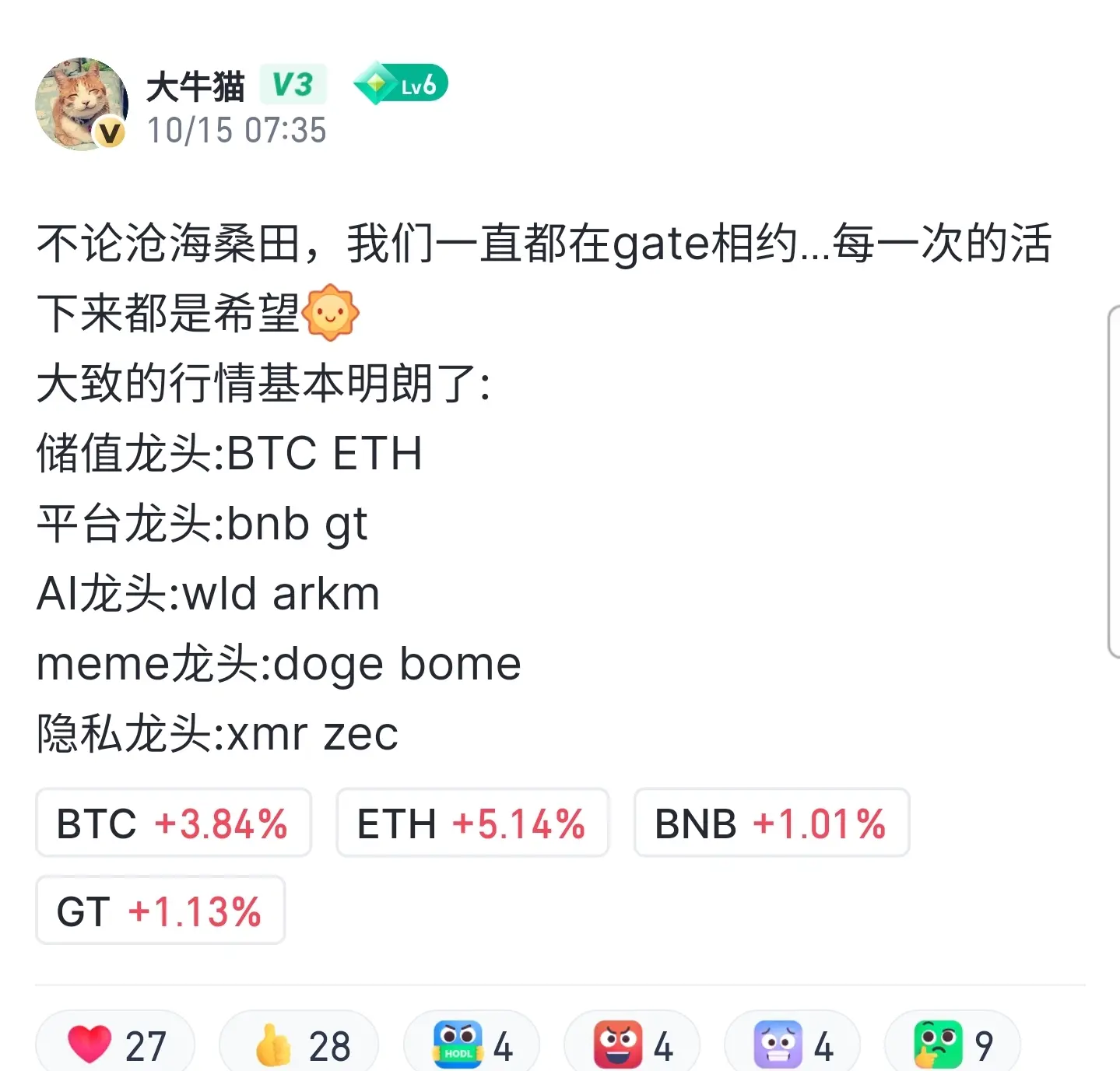 Big Cat, it feels like Gate.io's dynamics are useless. Can't even find something by myself, can only see a bunch of rubbish fooling suckers to do contracts [tears]